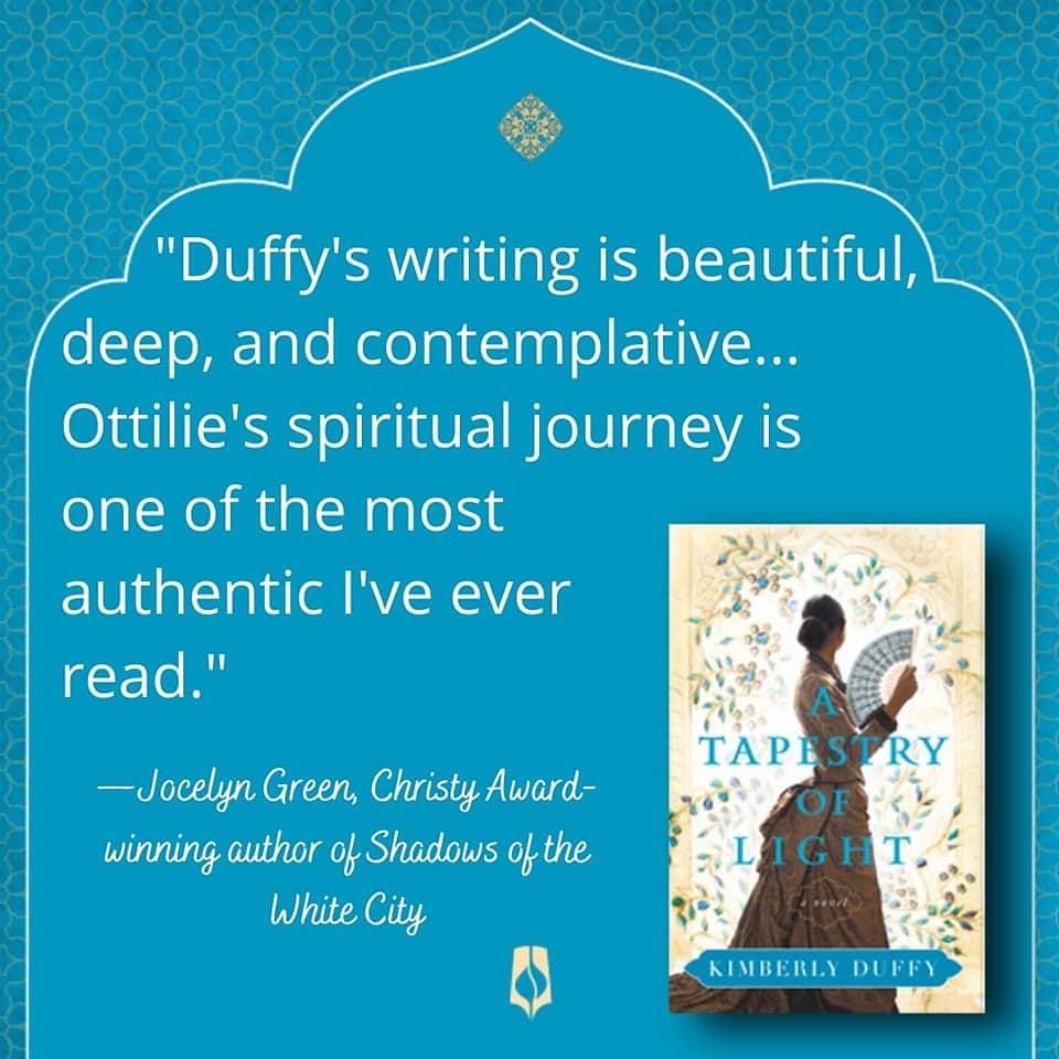 Have you ever found yourself in a story? By that I mean, found a character whose struggles and questions and aspirations are so much like yours, that their story really could be your story? This was the case for me with Kimberly Duffy’s second novel from Bethany House Publishers, entitled “A Tapestry of Light”. This gripping tale swept me away to India, where a young woman’s entire life is turned upside down with a terrible tragedy, followed by an unbelievable discovery.